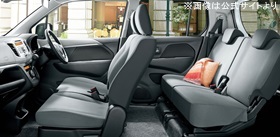 ワゴンRは広い車内を活かした多彩なシートアレンジが可能です。前部席のヘッドレストを外して後ろに倒すと後部席とつながってフルフラットな空間を作り出せるだけでなく、後部席と助手席を前倒させるとカーゴルームからフルフラットな床面が車内の助手席前まで広がります。