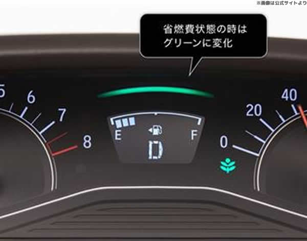 アンビエントメーターは燃料計上部の湾曲したランプでエコ運転を知らせる機能です。エコな運転をするほどランプの照明はブルーからグリーンに変わっていきます。